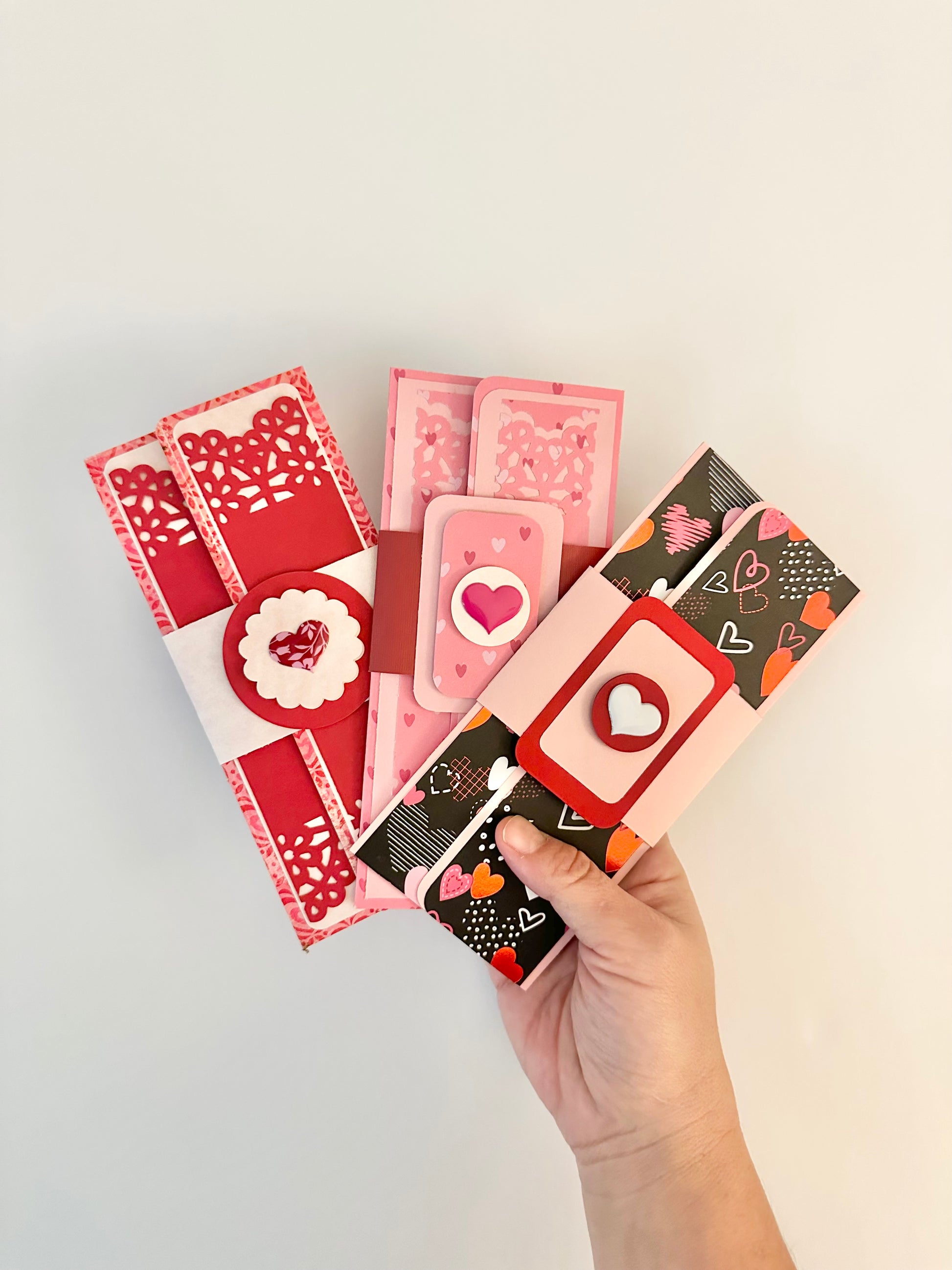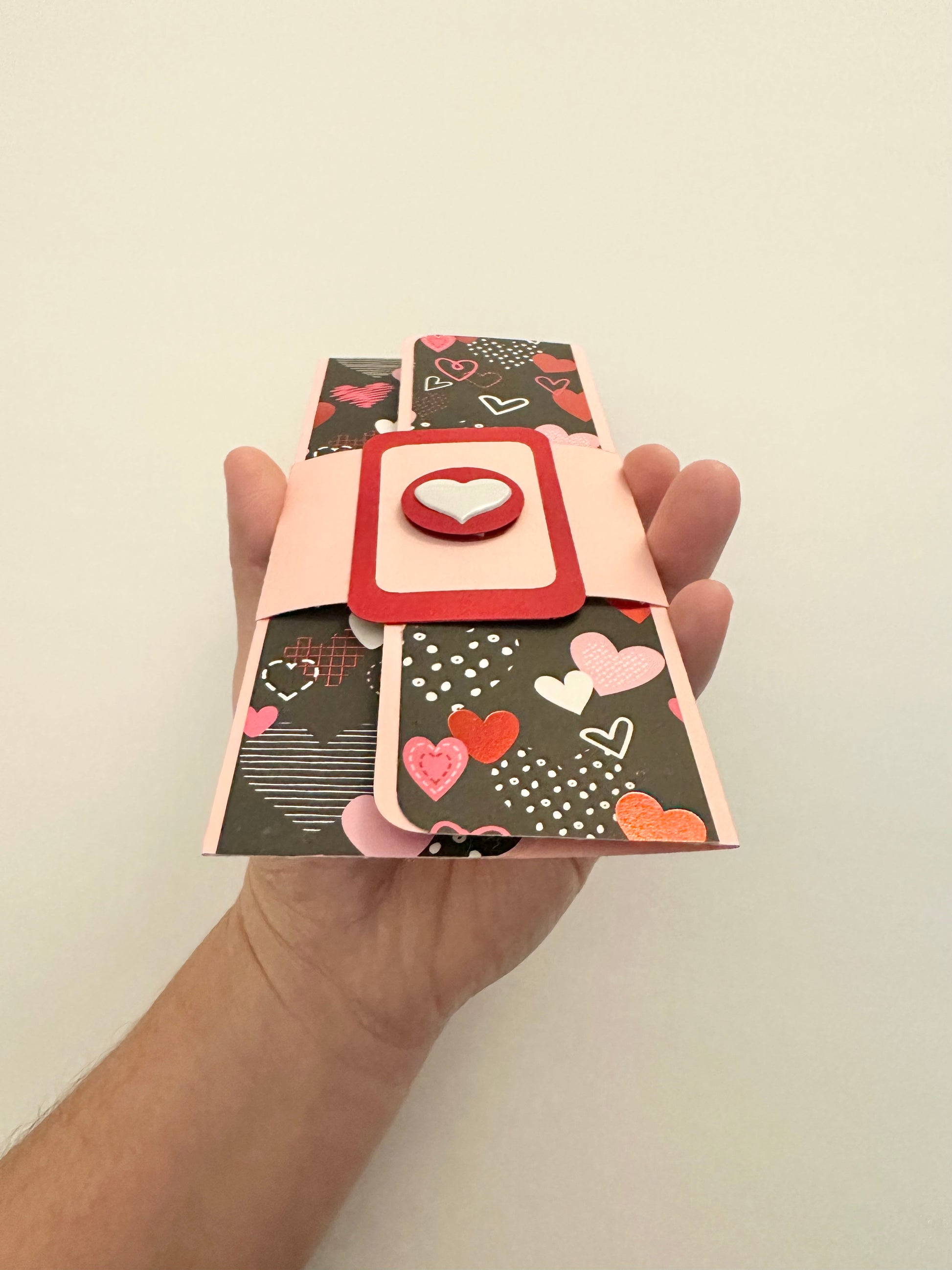 Handmade Light Pink Gift Envelope with Heart Pattern Belly Band – Fits Cash, Gift Certificates & Checks